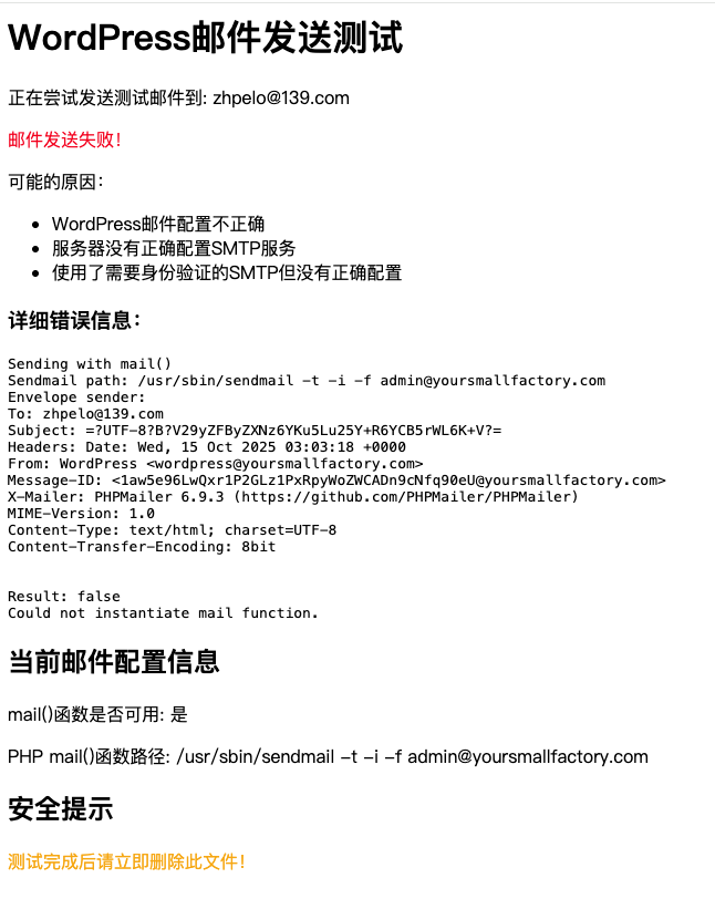 * WordPress邮件发送测试脚本(带详细错误信息)